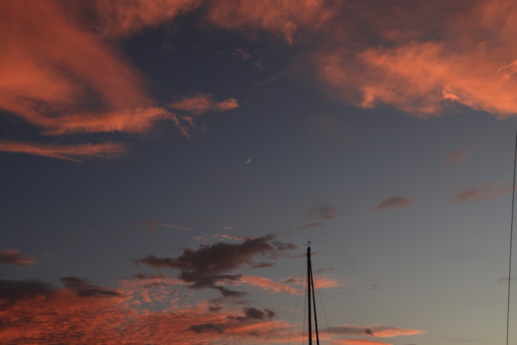 In the early morning the winds shifted. A northern wind blew in at 15 mph and the boat began to rock and roll. Waves piled up to 2 feet almost throughout the day and the anchor was banging so loud on the nose of the boat. Creaking and wailing with a sudden bang of metal I was in hell again. The anchor line tot holding for dear life. Gust of 20 mph winds, the air was 60 degrees and rain. What the heck kind of chill vibes is this. I checked the wind apps and all the apps said it would be blowing from the north the next two days and then the NE the next three days after. All at 20 mph steady with the topping gust at 30 mph on Thursday and Sunday. Thursday came it was right waves got up to 2-3 feet and the anchor continually banged the nose of the boat. I got zero sleep because it was so loud and had to put in ear plugs. That night my buddy (1 of 3) was asking how everything was going excited to see what he had in store. I had to be completely honest with him and said it has been miserable pretty much the whole time and every now and then I get a 6-hour peaceful moment that doubles down on the worst chaos. He was optimistic and said everything will be better once the boys come to town.