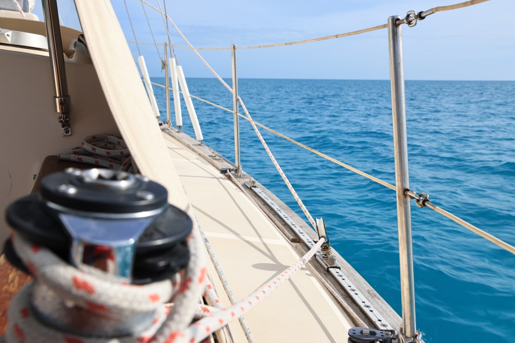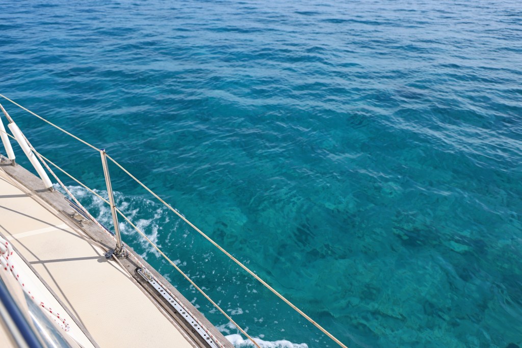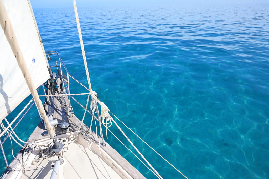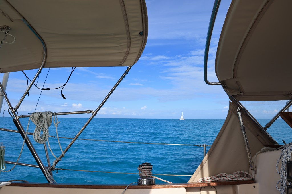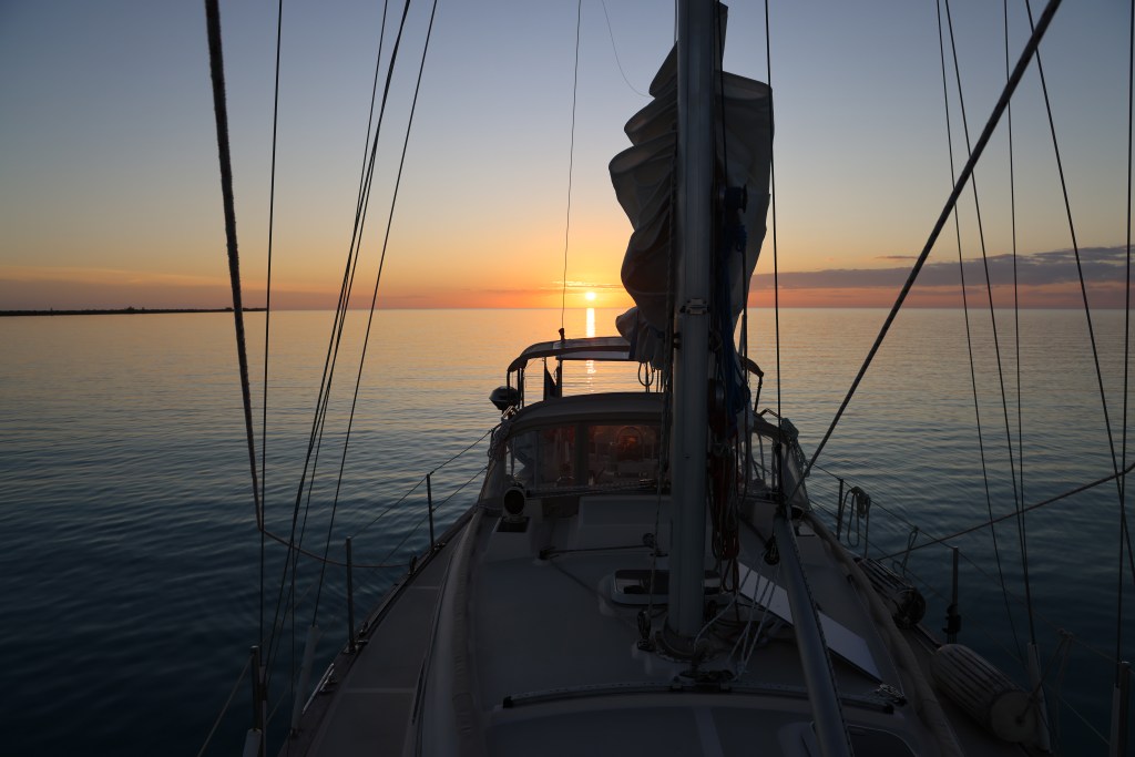 Once the sails were up I was cruising about 6 knots with the motor on. I was so happy because this mean I would for sure get there on time. For hours I just sat and stared at the teal vastness with the island that I came from disappearing. I got comfortable enough to cook some velveta, constantly checking navionics to make sure my autopilot was working. About 5 hours into the trip the wind died and my sails were fluffing. I had to take down the main Jib but I could leave the main sail up because it barely had wind. This part of the trip was incredible. The water was so flat for miles and that’s all you saw for miles and nothing else. No land in site, in. the middle of nowhere 15 miles in all directions.